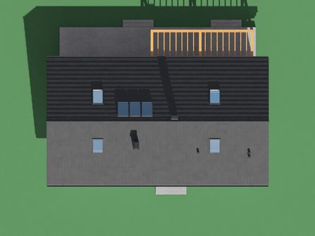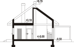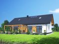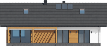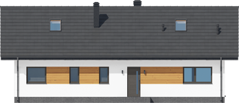 Graficzne opracowanie rzutów poglądowych widocznych na karcie projektu zostało wykonane przez Extradom.pl. Prezentowane przez Extradom.pl wizualizacje wykonane zostały przez autora projektu i należy poczytywać je jedynie za przykład i propozycję wykończenia, wizję architektoniczną autora projektu. Ostateczne wykończenie budynku może nastąpić na wiele sposobów. Szczegółowe rozwiązania zastosowane w oferowanej dokumentacji - w tym również ilość, lokalizacje i wygląd okien, drzwi, kominów - mogą w niewielkim stopniu różnić się od prezentowanej wizualizacji budynku.