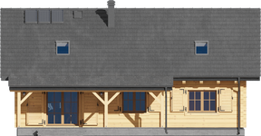 Wysokość ścianki kolankowej: 0.57 m. Strop: drewniany. Pokrycie dachu: dachówka gontopodobna Gerard Corona. Ściany zewnętrzne: płazy drewniane + wełna mineralna + deska. Ściany wewnętrzne: szkieletowe drewniane. Typ ogrzewania: elektryczne. Instalacje dodatkowe: instalacja solarna.