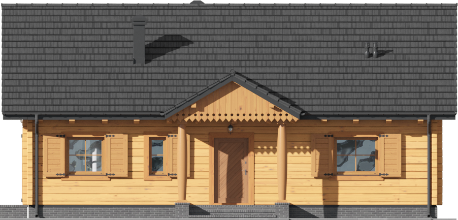 Graficzne opracowanie rzutów poglądowych widocznych na karcie projektu zostało wykonane przez Extradom.pl. Prezentowane przez Extradom.pl wizualizacje wykonane zostały przez autora projektu i należy poczytywać je jedynie za przykład i propozycję wykończenia, wizję architektoniczną autora projektu. Ostateczne wykończenie budynku może nastąpić na wiele sposobów. Szczegółowe rozwiązania zastosowane w oferowanej dokumentacji - w tym również ilość, lokalizacje i wygląd okien, drzwi, kominów - mogą w niewielkim stopniu różnić się od prezentowanej wizualizacji budynku.