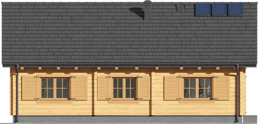 Wysokość ścianki kolankowej: 0.33 m. Strop: drewniany. Pokrycie dachu: dachówka gontopodobna Gerard Corona. Ściany zewnętrzne: płazy drewniane + wełna mineralna + deska. Ściany wewnętrzne: płazy drewniane. Typ ogrzewania: kocioł gazowy. Instalacje dodatkowe: instalacja solarna.