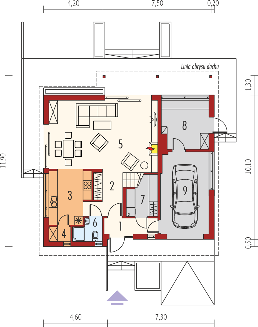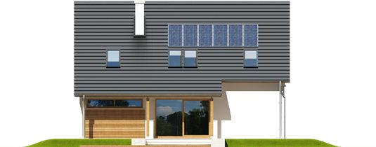 Graficzne opracowanie rzutów poglądowych widocznych na karcie projektu zostało wykonane przez Extradom.pl. Prezentowane przez Extradom.pl wizualizacje wykonane zostały przez autora projektu i należy poczytywać je jedynie za przykład i propozycję wykończenia, wizję architektoniczną autora projektu. Ostateczne wykończenie budynku może nastąpić na wiele sposobów. Szczegółowe rozwiązania zastosowane w oferowanej dokumentacji - w tym również ilość, lokalizacje i wygląd okien, drzwi, kominów - mogą w niewielkim stopniu różnić się od prezentowanej wizualizacji budynku.