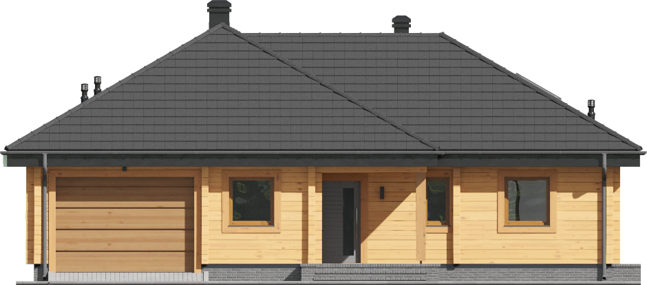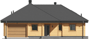 Wysokość ścianki kolankowej: 0.04 m. Strop: drewniany. Pokrycie dachu: dachówka gontopodobna Gerard Corona. Ściany zewnętrzne: płazy drewniane + wełna mineralna + deska. Ściany wewnętrzne: płazy drewniane. Typ ogrzewania: kocioł gazowy lub kocioł na paliwo stałe. Instalacje dodatkowe: instalacja solarna. Inne: brama garażowa Hörmann, okna połaciowe Fakro.