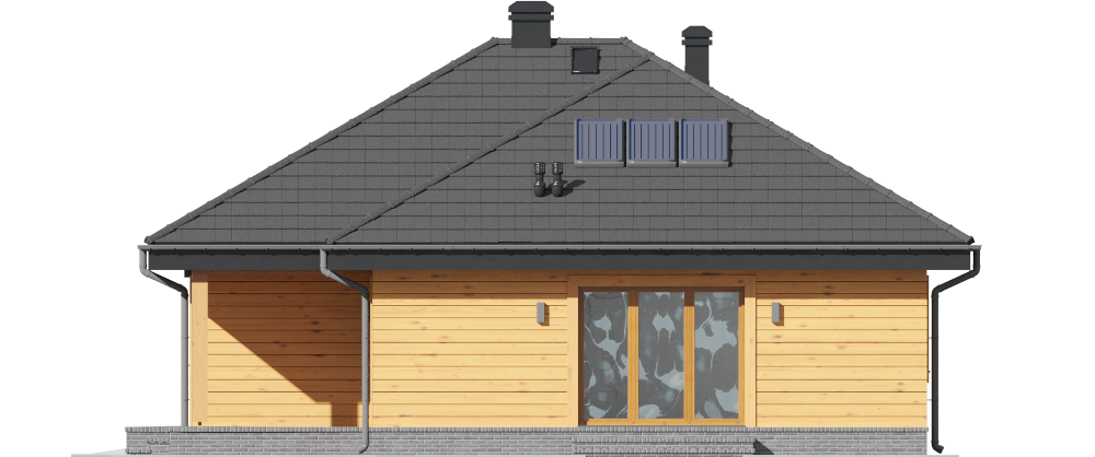 Graficzne opracowanie rzutów poglądowych widocznych na karcie projektu zostało wykonane przez Extradom.pl. Prezentowane przez Extradom.pl wizualizacje wykonane zostały przez autora projektu i należy poczytywać je jedynie za przykład i propozycję wykończenia, wizję architektoniczną autora projektu. Ostateczne wykończenie budynku może nastąpić na wiele sposobów. Szczegółowe rozwiązania zastosowane w oferowanej dokumentacji - w tym również ilość, lokalizacje i wygląd okien, drzwi, kominów - mogą w niewielkim stopniu różnić się od prezentowanej wizualizacji budynku.