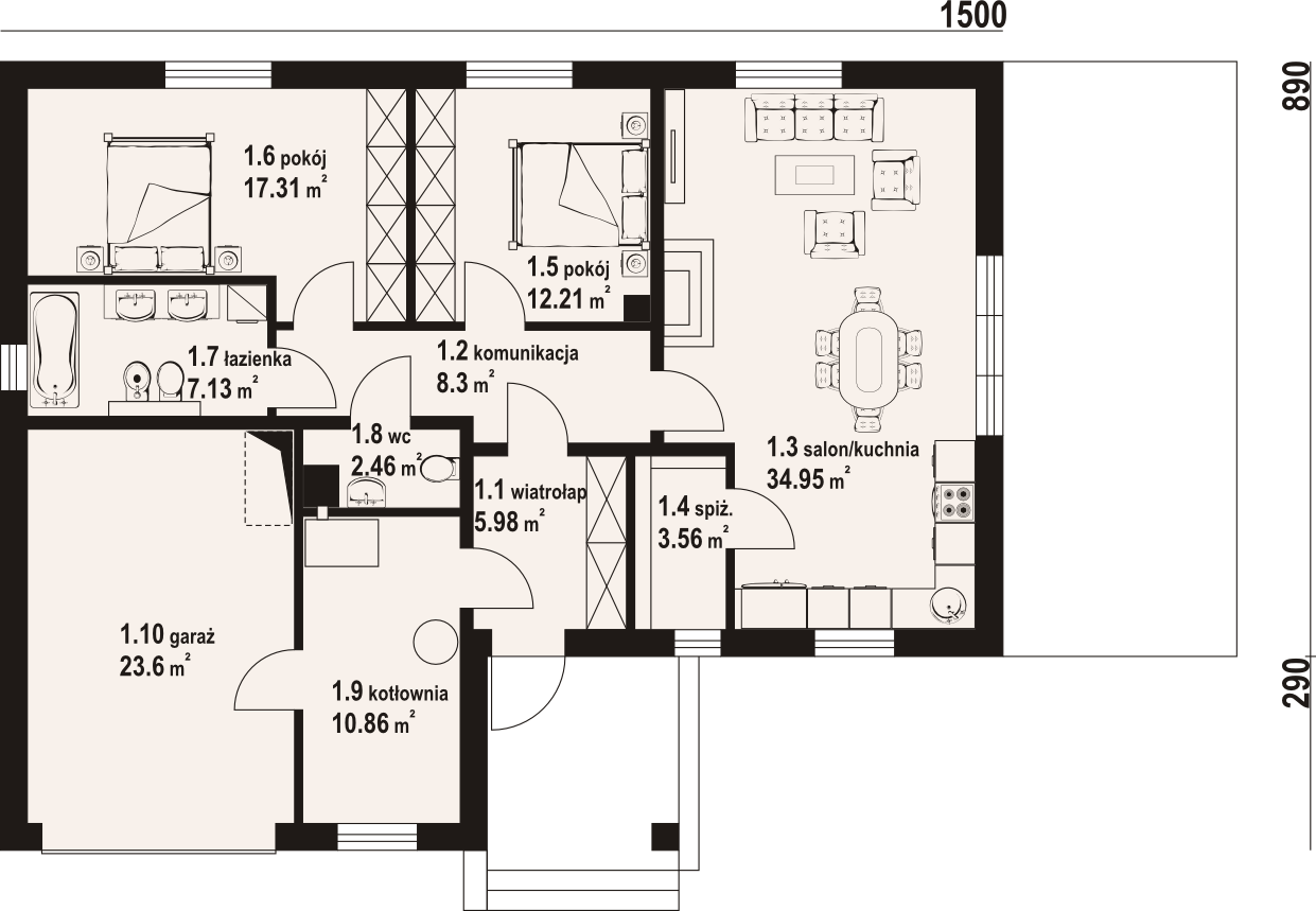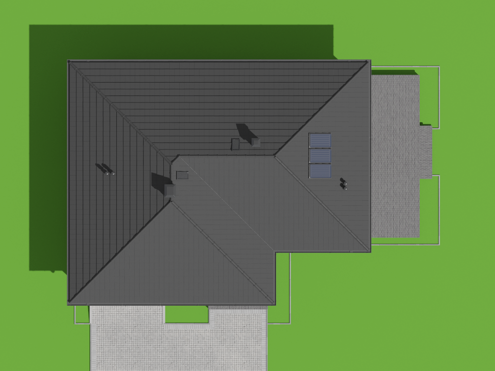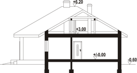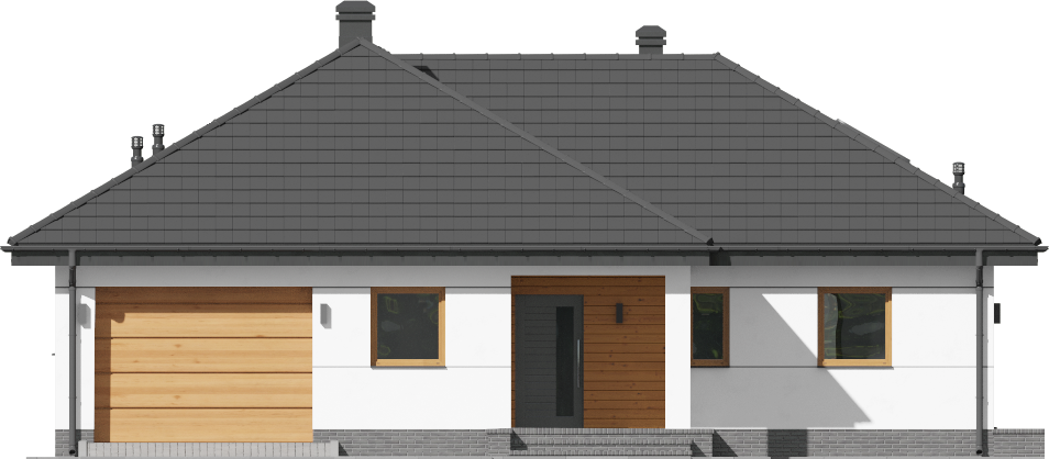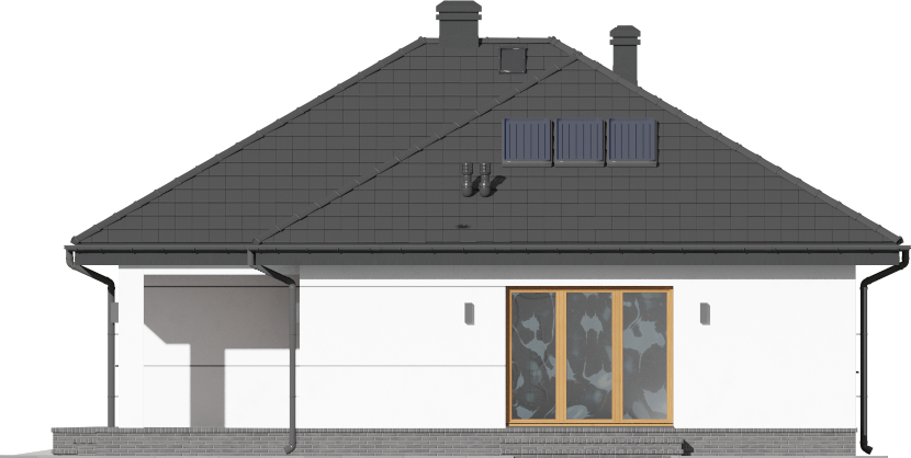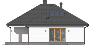Graficzne opracowanie rzutów poglądowych widocznych na karcie projektu zostało wykonane przez Extradom.pl. Prezentowane przez Extradom.pl wizualizacje wykonane zostały przez autora projektu i należy poczytywać je jedynie za przykład i propozycję wykończenia, wizję architektoniczną autora projektu. Ostateczne wykończenie budynku może nastąpić na wiele sposobów. Szczegółowe rozwiązania zastosowane w oferowanej dokumentacji - w tym również ilość, lokalizacje i wygląd okien, drzwi, kominów - mogą w niewielkim stopniu różnić się od prezentowanej wizualizacji budynku.