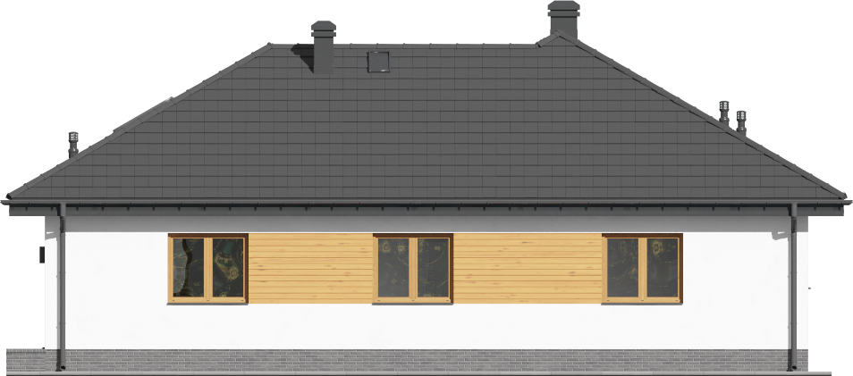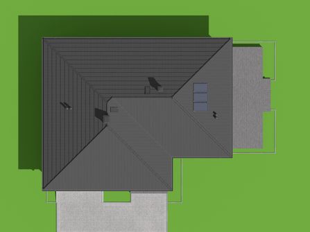 Graficzne opracowanie rzutów poglądowych widocznych na karcie projektu zostało wykonane przez Extradom.pl. Prezentowane przez Extradom.pl wizualizacje wykonane zostały przez autora projektu i należy poczytywać je jedynie za przykład i propozycję wykończenia, wizję architektoniczną autora projektu. Ostateczne wykończenie budynku może nastąpić na wiele sposobów. Szczegółowe rozwiązania zastosowane w oferowanej dokumentacji - w tym również ilość, lokalizacje i wygląd okien, drzwi, kominów - mogą w niewielkim stopniu różnić się od prezentowanej wizualizacji budynku.