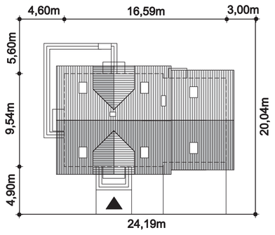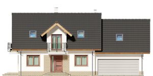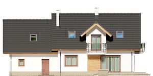 Graficzne opracowanie rzutów poglądowych widocznych na karcie projektu zostało wykonane przez Extradom.pl. Prezentowane przez Extradom.pl wizualizacje wykonane zostały przez autora projektu i należy poczytywać je jedynie za przykład i propozycję wykończenia, wizję architektoniczną autora projektu. Ostateczne wykończenie budynku może nastąpić na wiele sposobów. Szczegółowe rozwiązania zastosowane w oferowanej dokumentacji - w tym również ilość, lokalizacje i wygląd okien, drzwi, kominów - mogą w niewielkim stopniu różnić się od prezentowanej wizualizacji budynku.