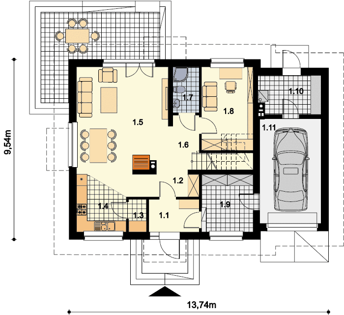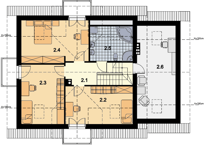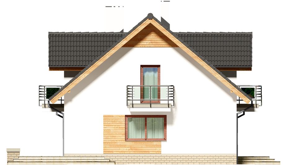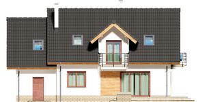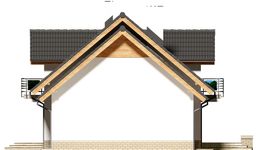 Graficzne opracowanie rzutów poglądowych widocznych na karcie projektu zostało wykonane przez Extradom.pl. Prezentowane przez Extradom.pl wizualizacje wykonane zostały przez autora projektu i należy poczytywać je jedynie za przykład i propozycję wykończenia, wizję architektoniczną autora projektu. Ostateczne wykończenie budynku może nastąpić na wiele sposobów. Szczegółowe rozwiązania zastosowane w oferowanej dokumentacji - w tym również ilość, lokalizacje i wygląd okien, drzwi, kominów - mogą w niewielkim stopniu różnić się od prezentowanej wizualizacji budynku.
