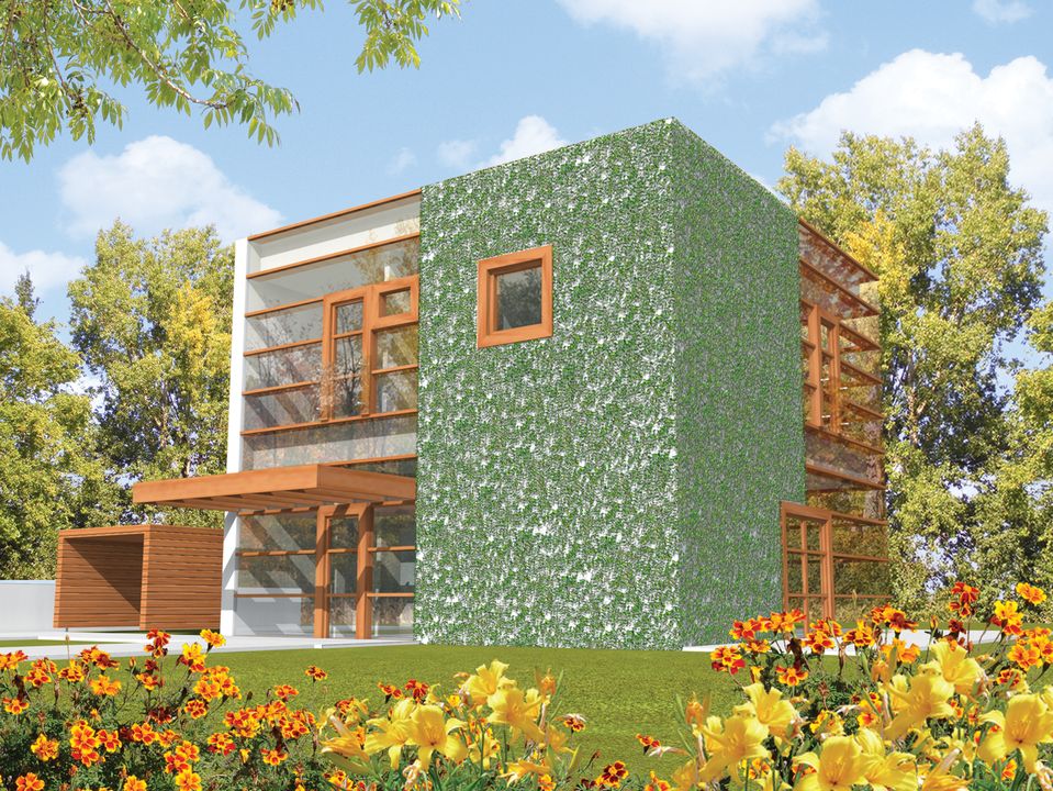 Dom zaprojektowano w technologii murowej ze stropami żelbetowymi. Schody wewnętrzne drewniane. Stropodach kryty folią termozgrzewalną. Wykończenie Elewację wykonano z tynku strukturalnego oraz okładzin drewnianych. Stolarka okienna drewniana.