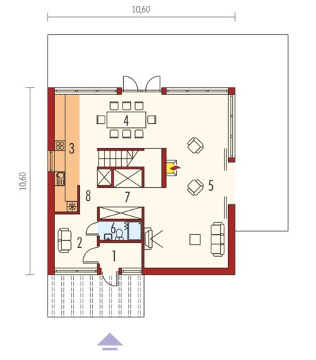 Graficzne opracowanie rzutów poglądowych widocznych na karcie projektu zostało wykonane przez Extradom.pl. Prezentowane przez Extradom.pl wizualizacje wykonane zostały przez autora projektu i należy poczytywać je jedynie za przykład i propozycję wykończenia, wizję architektoniczną autora projektu. Ostateczne wykończenie budynku może nastąpić na wiele sposobów. Szczegółowe rozwiązania zastosowane w oferowanej dokumentacji - w tym również ilość, lokalizacje i wygląd okien, drzwi, kominów - mogą w niewielkim stopniu różnić się od prezentowanej wizualizacji budynku.