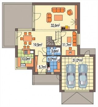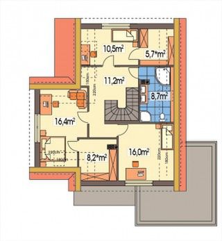 Graficzne opracowanie rzutów poglądowych widocznych na karcie projektu zostało wykonane przez Extradom.pl. Prezentowane przez Extradom.pl wizualizacje wykonane zostały przez autora projektu i należy poczytywać je jedynie za przykład i propozycję wykończenia, wizję architektoniczną autora projektu. Ostateczne wykończenie budynku może nastąpić na wiele sposobów. Szczegółowe rozwiązania zastosowane w oferowanej dokumentacji - w tym również ilość, lokalizacje i wygląd okien, drzwi, kominów - mogą w niewielkim stopniu różnić się od prezentowanej wizualizacji budynku.