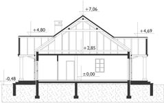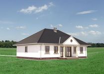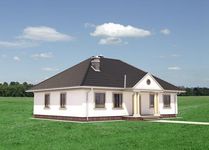 Graficzne opracowanie rzutów poglądowych widocznych na karcie projektu zostało wykonane przez Extradom.pl. Prezentowane przez Extradom.pl wizualizacje wykonane zostały przez autora projektu i należy poczytywać je jedynie za przykład i propozycję wykończenia, wizję architektoniczną autora projektu. Ostateczne wykończenie budynku może nastąpić na wiele sposobów. Szczegółowe rozwiązania zastosowane w oferowanej dokumentacji - w tym również ilość, lokalizacje i wygląd okien, drzwi, kominów - mogą w niewielkim stopniu różnić się od prezentowanej wizualizacji budynku.