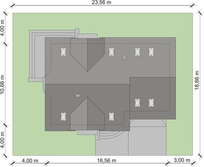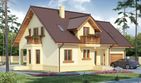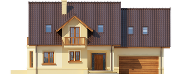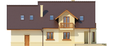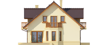 Graficzne opracowanie rzutów poglądowych widocznych na karcie projektu zostało wykonane przez Extradom.pl. Prezentowane przez Extradom.pl wizualizacje wykonane zostały przez autora projektu i należy poczytywać je jedynie za przykład i propozycję wykończenia, wizję architektoniczną autora projektu. Ostateczne wykończenie budynku może nastąpić na wiele sposobów. Szczegółowe rozwiązania zastosowane w oferowanej dokumentacji - w tym również ilość, lokalizacje i wygląd okien, drzwi, kominów - mogą w niewielkim stopniu różnić się od prezentowanej wizualizacji budynku.