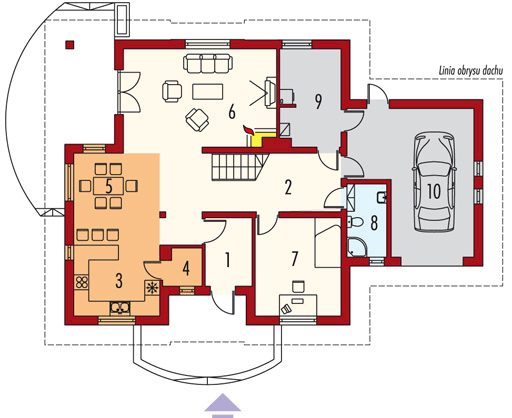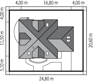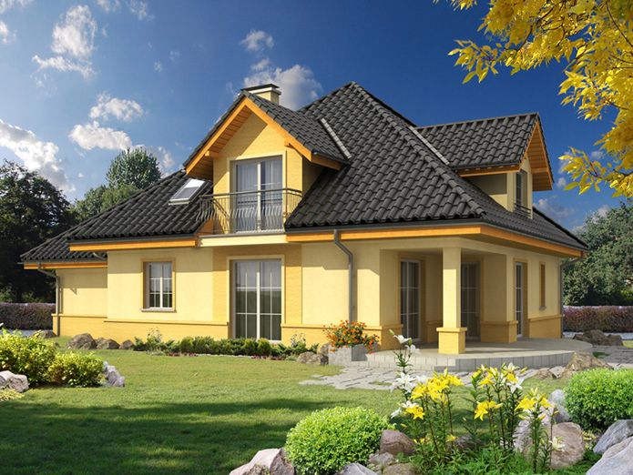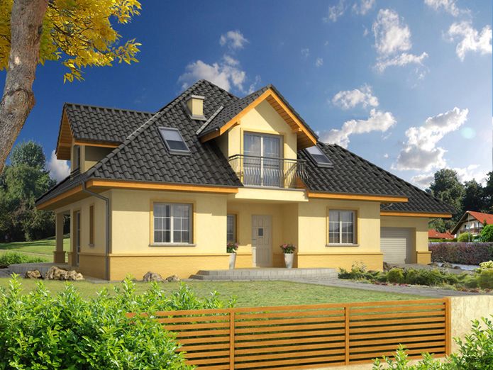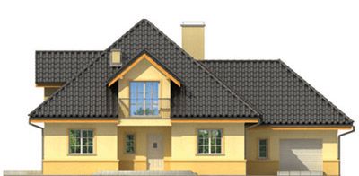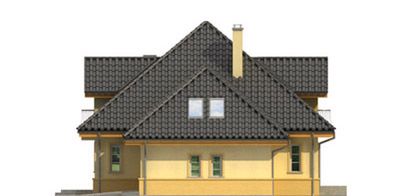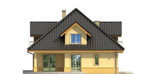 Graficzne opracowanie rzutów poglądowych widocznych na karcie projektu zostało wykonane przez Extradom.pl. Prezentowane przez Extradom.pl wizualizacje wykonane zostały przez autora projektu i należy poczytywać je jedynie za przykład i propozycję wykończenia, wizję architektoniczną autora projektu. Ostateczne wykończenie budynku może nastąpić na wiele sposobów. Szczegółowe rozwiązania zastosowane w oferowanej dokumentacji - w tym również ilość, lokalizacje i wygląd okien, drzwi, kominów - mogą w niewielkim stopniu różnić się od prezentowanej wizualizacji budynku.