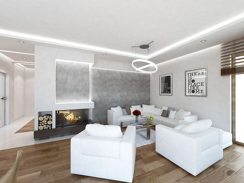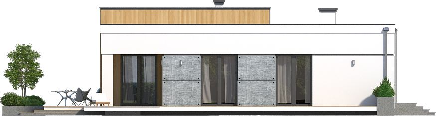 Graficzne opracowanie rzutów poglądowych widocznych na karcie projektu zostało wykonane przez Extradom.pl. Prezentowane przez Extradom.pl wizualizacje wykonane zostały przez autora projektu i należy poczytywać je jedynie za przykład i propozycję wykończenia, wizję architektoniczną autora projektu. Ostateczne wykończenie budynku może nastąpić na wiele sposobów. Szczegółowe rozwiązania zastosowane w oferowanej dokumentacji - w tym również ilość, lokalizacje i wygląd okien, drzwi, kominów - mogą w niewielkim stopniu różnić się od prezentowanej wizualizacji budynku.