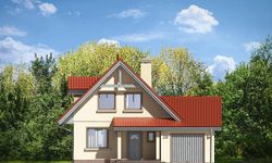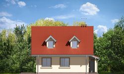 Graficzne opracowanie rzutów poglądowych widocznych na karcie projektu zostało wykonane przez Extradom.pl. Prezentowane przez Extradom.pl wizualizacje wykonane zostały przez autora projektu i należy poczytywać je jedynie za przykład i propozycję wykończenia, wizję architektoniczną autora projektu. Ostateczne wykończenie budynku może nastąpić na wiele sposobów. Szczegółowe rozwiązania zastosowane w oferowanej dokumentacji - w tym również ilość, lokalizacje i wygląd okien, drzwi, kominów - mogą w niewielkim stopniu różnić się od prezentowanej wizualizacji budynku.