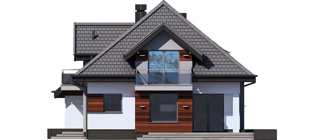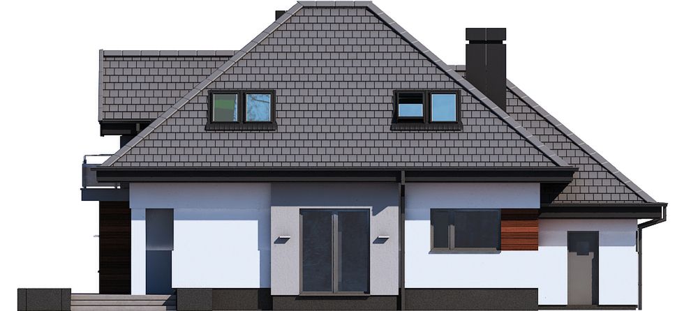 Graficzne opracowanie rzutów poglądowych widocznych na karcie projektu zostało wykonane przez Extradom.pl. Prezentowane przez Extradom.pl wizualizacje wykonane zostały przez autora projektu i należy poczytywać je jedynie za przykład i propozycję wykończenia, wizję architektoniczną autora projektu. Ostateczne wykończenie budynku może nastąpić na wiele sposobów. Szczegółowe rozwiązania zastosowane w oferowanej dokumentacji - w tym również ilość, lokalizacje i wygląd okien, drzwi, kominów - mogą w niewielkim stopniu różnić się od prezentowanej wizualizacji budynku.