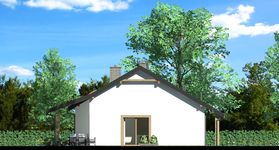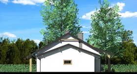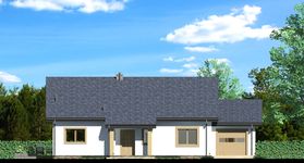 Graficzne opracowanie rzutów poglądowych widocznych na karcie projektu zostało wykonane przez Extradom.pl. Prezentowane przez Extradom.pl wizualizacje wykonane zostały przez autora projektu i należy poczytywać je jedynie za przykład i propozycję wykończenia, wizję architektoniczną autora projektu. Ostateczne wykończenie budynku może nastąpić na wiele sposobów. Szczegółowe rozwiązania zastosowane w oferowanej dokumentacji - w tym również ilość, lokalizacje i wygląd okien, drzwi, kominów - mogą w niewielkim stopniu różnić się od prezentowanej wizualizacji budynku.