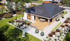 Graficzne opracowanie rzutów poglądowych widocznych na karcie projektu zostało wykonane przez Extradom.pl. Prezentowane przez Extradom.pl wizualizacje wykonane zostały przez autora projektu i należy poczytywać je jedynie za przykład i propozycję wykończenia, wizję architektoniczną autora projektu. Ostateczne wykończenie budynku może nastąpić na wiele sposobów. Szczegółowe rozwiązania zastosowane w oferowanej dokumentacji - w tym również ilość, lokalizacje i wygląd okien, drzwi, kominów - mogą w niewielkim stopniu różnić się od prezentowanej wizualizacji budynku.