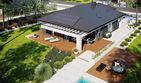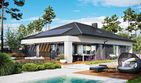 Graficzne opracowanie rzutów poglądowych widocznych na karcie projektu zostało wykonane przez Extradom.pl. Prezentowane przez Extradom.pl wizualizacje wykonane zostały przez autora projektu i należy poczytywać je jedynie za przykład i propozycję wykończenia, wizję architektoniczną autora projektu. Ostateczne wykończenie budynku może nastąpić na wiele sposobów. Szczegółowe rozwiązania zastosowane w oferowanej dokumentacji - w tym również ilość, lokalizacje i wygląd okien, drzwi, kominów - mogą w niewielkim stopniu różnić się od prezentowanej wizualizacji budynku.