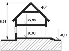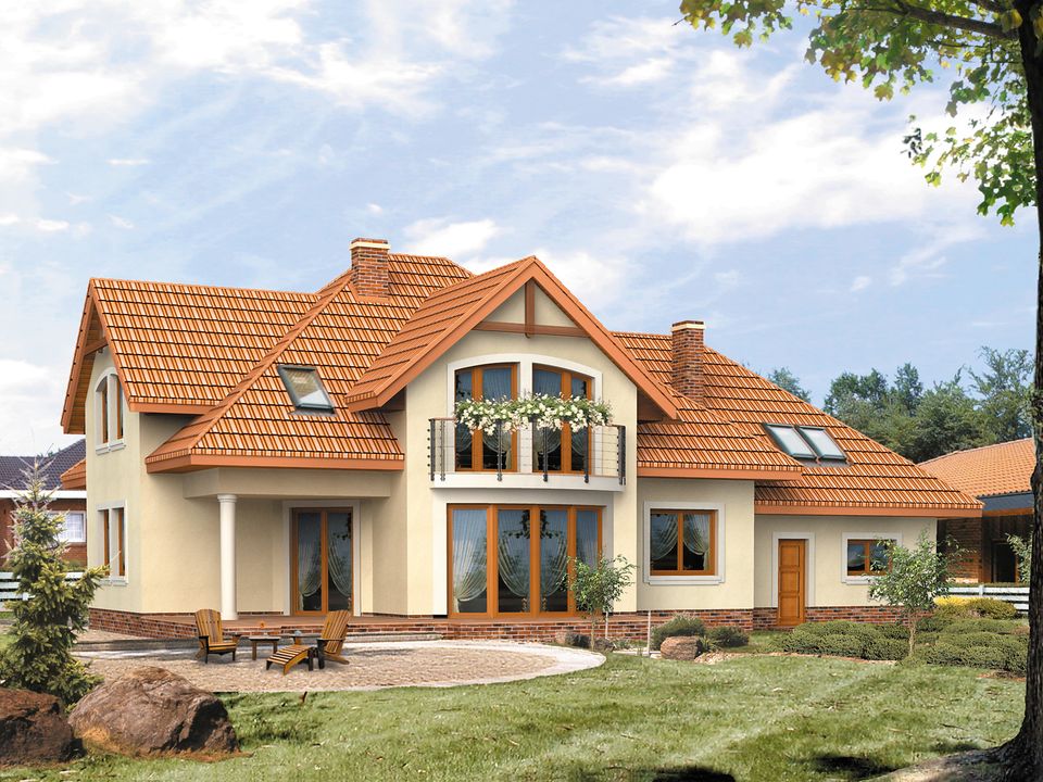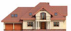 Ściany: 2-warstwowe - YTONG 24 cm + styropian. Stropy: gęstożebrowe. Dach: dachówka ceramiczna CREATON, kąt nachylenia 40°. Ogrzewanie: gazowe, pakiet "Kotłownia na paliwo stałe", olejowe.