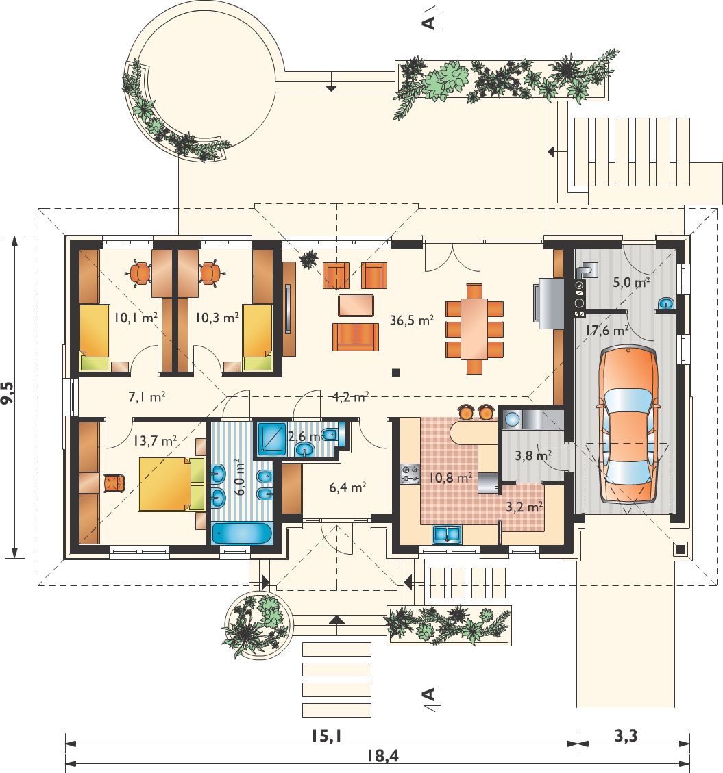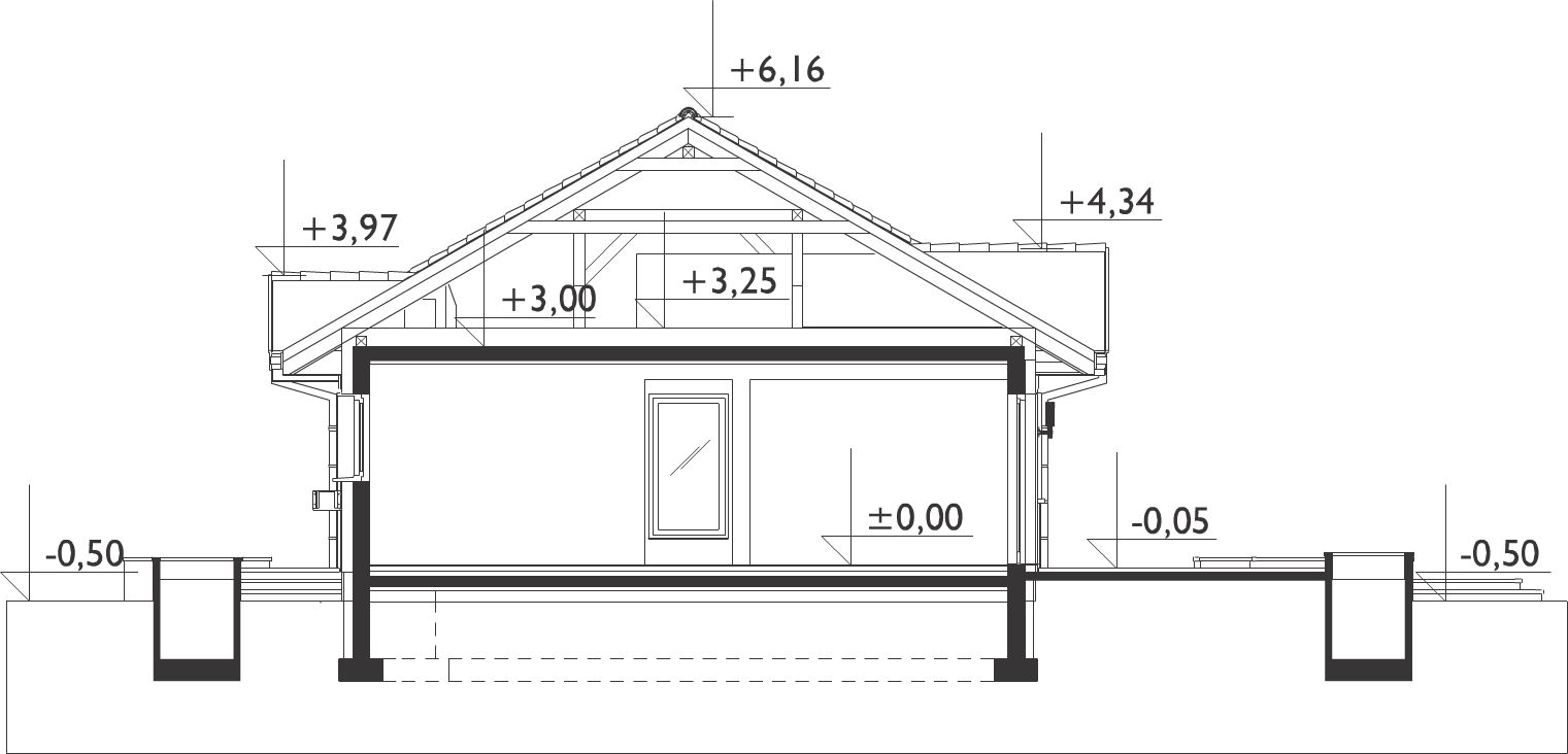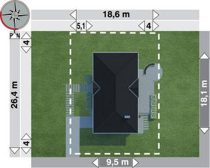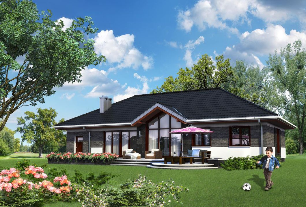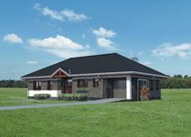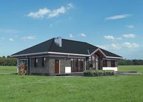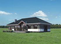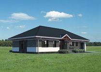 Graficzne opracowanie rzutów poglądowych widocznych na karcie projektu zostało wykonane przez Extradom.pl. Prezentowane przez Extradom.pl wizualizacje wykonane zostały przez autora projektu i należy poczytywać je jedynie za przykład i propozycję wykończenia, wizję architektoniczną autora projektu. Ostateczne wykończenie budynku może nastąpić na wiele sposobów. Szczegółowe rozwiązania zastosowane w oferowanej dokumentacji - w tym również ilość, lokalizacje i wygląd okien, drzwi, kominów - mogą w niewielkim stopniu różnić się od prezentowanej wizualizacji budynku.