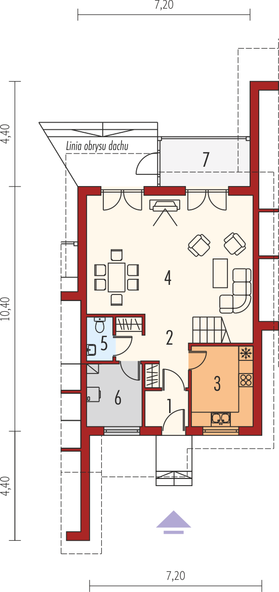 Graficzne opracowanie rzutów poglądowych widocznych na karcie projektu zostało wykonane przez Extradom.pl. Prezentowane przez Extradom.pl wizualizacje wykonane zostały przez autora projektu i należy poczytywać je jedynie za przykład i propozycję wykończenia, wizję architektoniczną autora projektu. Ostateczne wykończenie budynku może nastąpić na wiele sposobów. Szczegółowe rozwiązania zastosowane w oferowanej dokumentacji - w tym również ilość, lokalizacje i wygląd okien, drzwi, kominów - mogą w niewielkim stopniu różnić się od prezentowanej wizualizacji budynku.