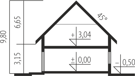 Dom zaprojektowano w technologii murowej ze stropem gęstożebrowym. Schody wewnętrzne drewniane. Dach o konstrukcji drewnianej kryty dachówką cementową lub ceramiczną. Elewację wykonano z tynku strukturalnego w dwóch kolorach i elementów z drewna barwionego. Stolarka okienna drewniana. Okna połaciowe.