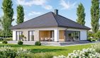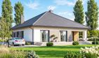 Graficzne opracowanie rzutów poglądowych widocznych na karcie projektu zostało wykonane przez Extradom.pl. Prezentowane przez Extradom.pl wizualizacje wykonane zostały przez autora projektu i należy poczytywać je jedynie za przykład i propozycję wykończenia, wizję architektoniczną autora projektu. Ostateczne wykończenie budynku może nastąpić na wiele sposobów. Szczegółowe rozwiązania zastosowane w oferowanej dokumentacji - w tym również ilość, lokalizacje i wygląd okien, drzwi, kominów - mogą w niewielkim stopniu różnić się od prezentowanej wizualizacji budynku.