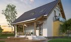 Graficzne opracowanie rzutów poglądowych widocznych na karcie projektu zostało wykonane przez Extradom.pl. Prezentowane przez Extradom.pl wizualizacje wykonane zostały przez autora projektu i należy poczytywać je jedynie za przykład i propozycję wykończenia, wizję architektoniczną autora projektu. Ostateczne wykończenie budynku może nastąpić na wiele sposobów. Szczegółowe rozwiązania zastosowane w oferowanej dokumentacji - w tym również ilość, lokalizacje i wygląd okien, drzwi, kominów - mogą w niewielkim stopniu różnić się od prezentowanej wizualizacji budynku.