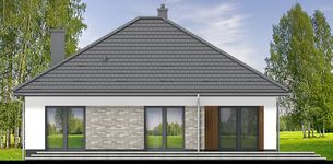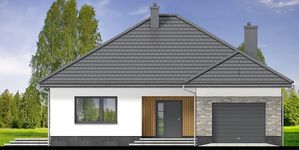 Graficzne opracowanie rzutów poglądowych widocznych na karcie projektu zostało wykonane przez Extradom.pl. Prezentowane przez Extradom.pl wizualizacje wykonane zostały przez autora projektu i należy poczytywać je jedynie za przykład i propozycję wykończenia, wizję architektoniczną autora projektu. Ostateczne wykończenie budynku może nastąpić na wiele sposobów. Szczegółowe rozwiązania zastosowane w oferowanej dokumentacji - w tym również ilość, lokalizacje i wygląd okien, drzwi, kominów - mogą w niewielkim stopniu różnić się od prezentowanej wizualizacji budynku.