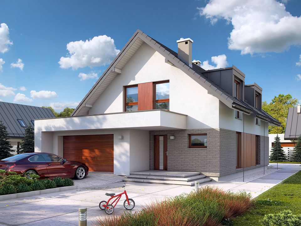 Dach: dachówka lub blachodachówka. Elewacje: tynk, płytka elewacyjna, płyta hpl lub szalówka. Strop: żelbetowy. Ściany wewnętrzne: murowane. Ściany zewnętrzne: dwuwarstwowe, pustak ceramiczny, docieplony styropianem. Ogrzewanie: kocioł gazowy lub kocioł na paliwo stałe.