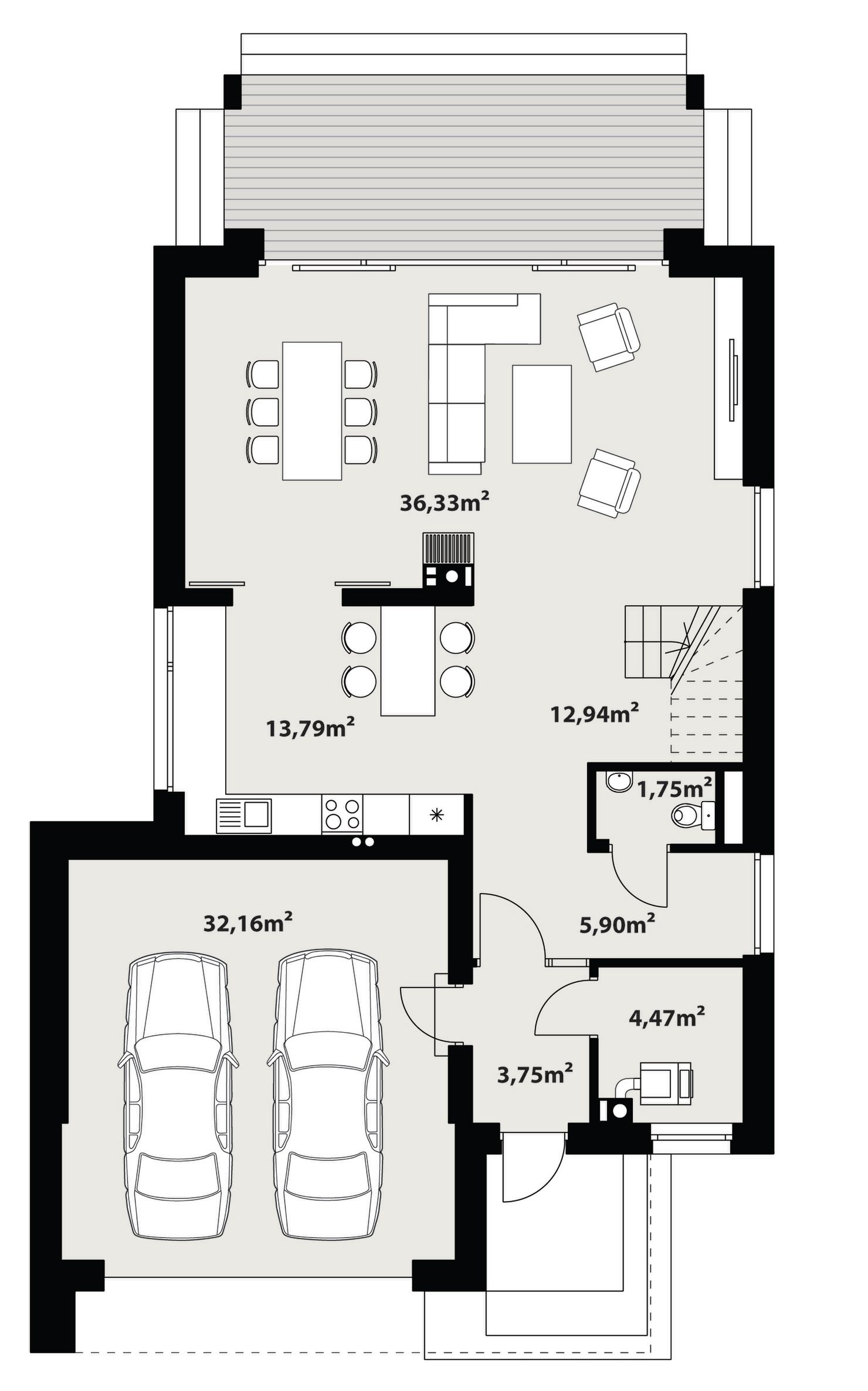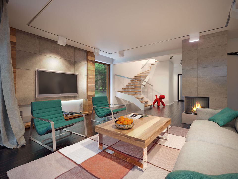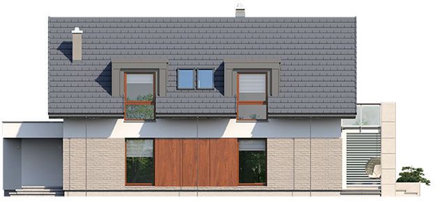 Graficzne opracowanie rzutów poglądowych widocznych na karcie projektu zostało wykonane przez Extradom.pl. Prezentowane przez Extradom.pl wizualizacje wykonane zostały przez autora projektu i należy poczytywać je jedynie za przykład i propozycję wykończenia, wizję architektoniczną autora projektu. Ostateczne wykończenie budynku może nastąpić na wiele sposobów. Szczegółowe rozwiązania zastosowane w oferowanej dokumentacji - w tym również ilość, lokalizacje i wygląd okien, drzwi, kominów - mogą w niewielkim stopniu różnić się od prezentowanej wizualizacji budynku.