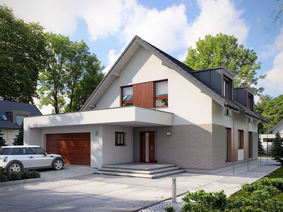 Dach: dachówka lub blachodachówka. Elewacje: tynk, płytka elewacyjna, płyta hpl lub szalówka. Strop: żelbetowy. Ściany wewnętrzne: murowane. Ściany zewnętrzne: dwuwarstwowe, pustak ceramiczny, docieplony styropianem. Ogrzewanie: kocioł gazowy lub kocioł na paliwo stałe.