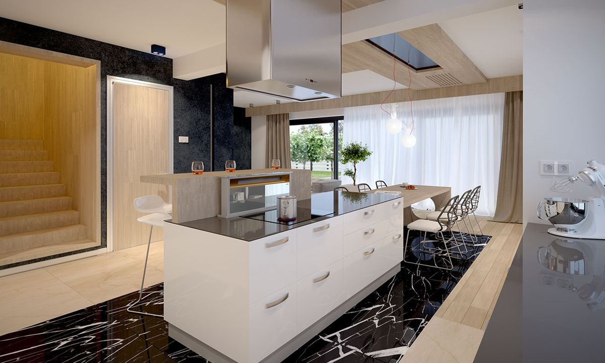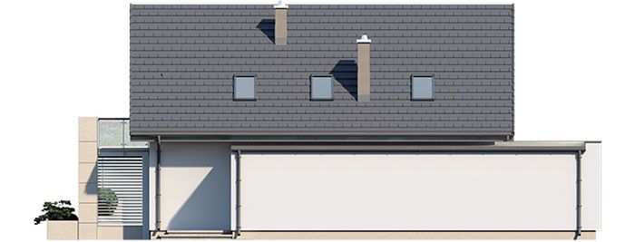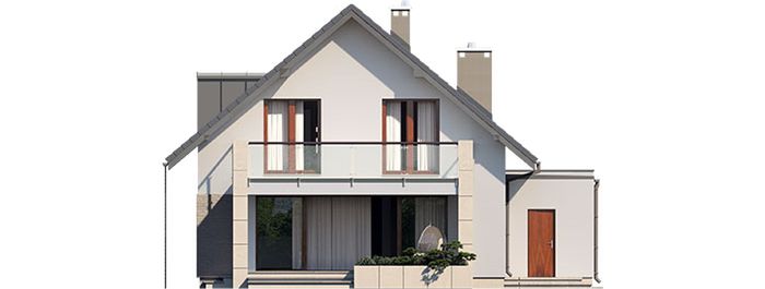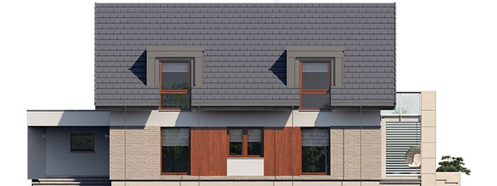 Graficzne opracowanie rzutów poglądowych widocznych na karcie projektu zostało wykonane przez Extradom.pl. Prezentowane przez Extradom.pl wizualizacje wykonane zostały przez autora projektu i należy poczytywać je jedynie za przykład i propozycję wykończenia, wizję architektoniczną autora projektu. Ostateczne wykończenie budynku może nastąpić na wiele sposobów. Szczegółowe rozwiązania zastosowane w oferowanej dokumentacji - w tym również ilość, lokalizacje i wygląd okien, drzwi, kominów - mogą w niewielkim stopniu różnić się od prezentowanej wizualizacji budynku.