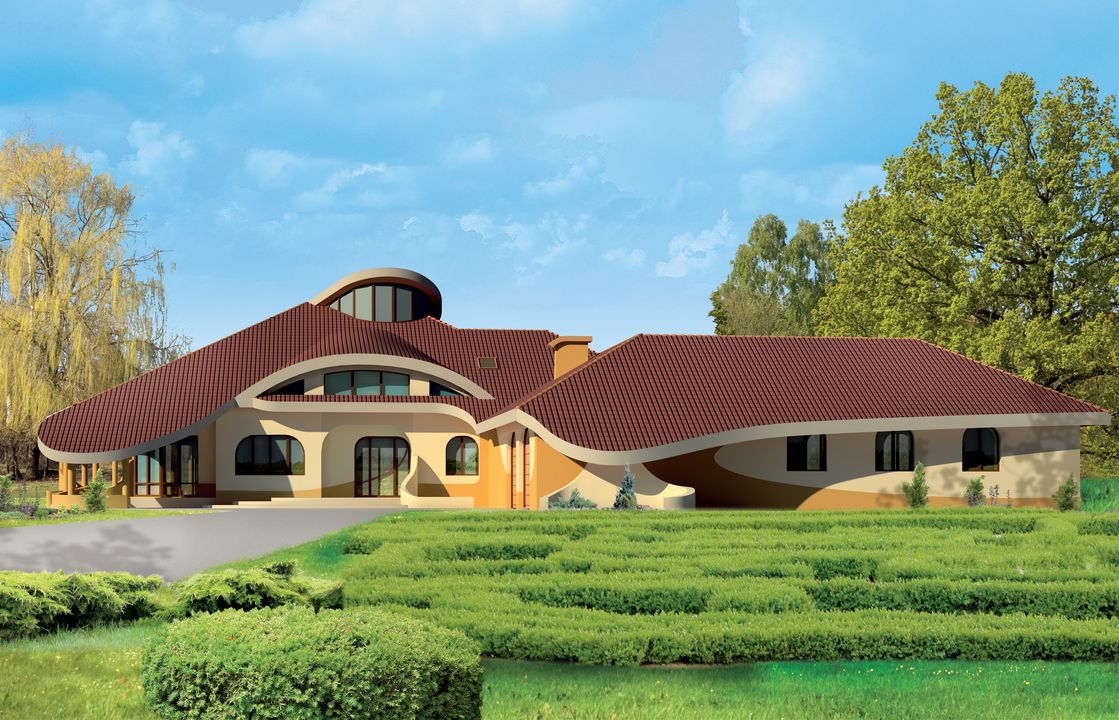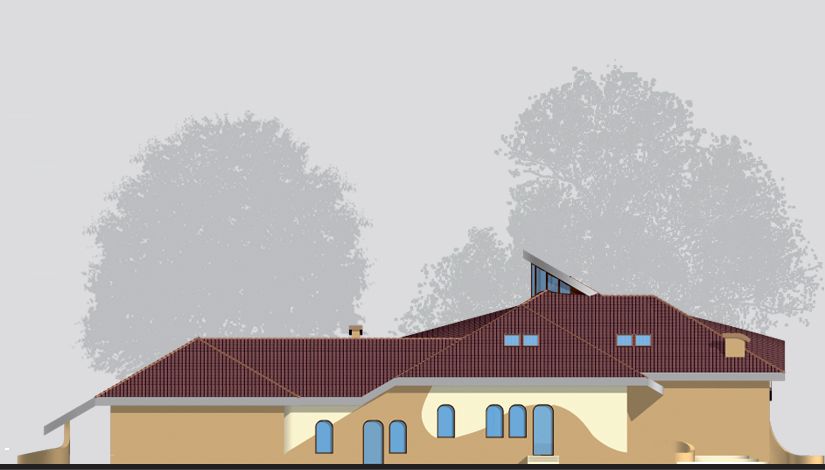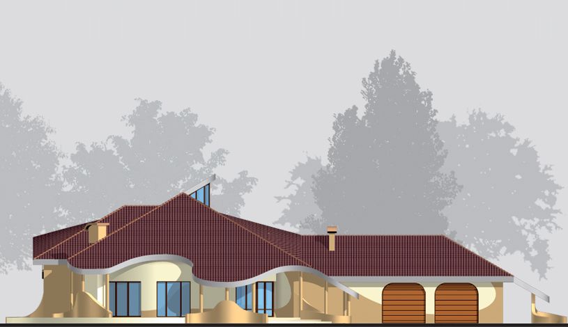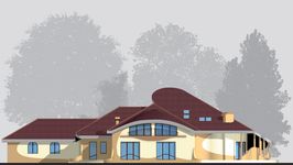 Graficzne opracowanie rzutów poglądowych widocznych na karcie projektu zostało wykonane przez Extradom.pl. Prezentowane przez Extradom.pl wizualizacje wykonane zostały przez autora projektu i należy poczytywać je jedynie za przykład i propozycję wykończenia, wizję architektoniczną autora projektu. Ostateczne wykończenie budynku może nastąpić na wiele sposobów. Szczegółowe rozwiązania zastosowane w oferowanej dokumentacji - w tym również ilość, lokalizacje i wygląd okien, drzwi, kominów - mogą w niewielkim stopniu różnić się od prezentowanej wizualizacji budynku.