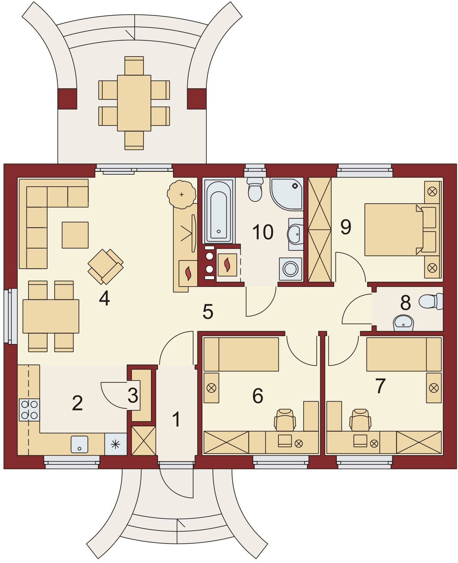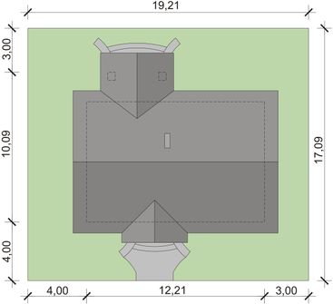 Graficzne opracowanie rzutów poglądowych widocznych na karcie projektu zostało wykonane przez Extradom.pl. Prezentowane przez Extradom.pl wizualizacje wykonane zostały przez autora projektu i należy poczytywać je jedynie za przykład i propozycję wykończenia, wizję architektoniczną autora projektu. Ostateczne wykończenie budynku może nastąpić na wiele sposobów. Szczegółowe rozwiązania zastosowane w oferowanej dokumentacji - w tym również ilość, lokalizacje i wygląd okien, drzwi, kominów - mogą w niewielkim stopniu różnić się od prezentowanej wizualizacji budynku.