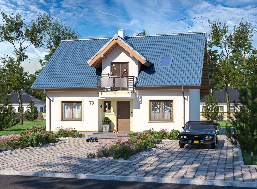 Projekt domu parterowego z poddaszem użytkowym Amant WOE1032 spełniał moje oczekiwania właściwie pod każdym względem, dlatego też zdecydowałam się na jego realizację. Od początku zależało mi na budynku o prostej bryle, gdyż taka forma domu dawała gwarancję, że będzie on łatwy w budowie. Dodatkowo, chciałam aby dach posiadał dwuspadową konstrukcję - mała ilość skosów na poddaszu powoduje, iż pokoje na tej kondygnacji są przestronne i ustawne. Kolejnym ważnym aspektem był dla mnie układ pomieszczeń, który w tym przypadku wyjątkowo przypadł mi do gustu. Cała inwestycja przebiegła sprawnie i bez żadnych problemów. Wszystkie etapy budowy odbyły się zgodnie z planem, a fachowcy nie mieli zastrzeżeń do technicznej strony projektu. Budynek został wymurowany z pustaków ceramicznych, zaś na dachu zastosowaliśmy blachodachówkę. Od momentu rozpoczęcia pierwszych prac budowlanych, do wprowadzenia się do nowego, w pełni wykończonego domu minęło w naszym przypadku zaledwie 1,5 roku. Usytuowanie naszego domu względem stron świata jest dokładnie takie na jakim nam zależało. Front budynku i tym samym kuchenne okno wychodzi na północ, zaś tylna część bryły znajduje się po stronie południowej. Takie położenie świetnie się sprawdza - od początku chcieliśmy, aby na najwięcej słońca znajdowało się na tarasie, gdyż to głównie tam wypoczywamy w porze letniej. Przy takim układzie mamy wystarczająco jasno we wszystkich pomieszczeniach. Postanowiliśmy jednak wstawić dodatkowe okno nad klatką schodową. Był to naprawdę świetny pomysł, gdyż teraz jest ona dostatecznie oświetlona.Decyzja o wyborze projektu Amant WOE1032 była dobrze przemyślana i na chwilę obecną jestem bardzo zadowolona z tego wyboru. Przewidziany w nim układ pomieszczeń od razu mi się spodobał i wiedziałam, że jest on w całości dopasowany do potrzeb naszej rodziny. Z tego względu nie potrzebowałam nawet wprowadzać do niego jakichkolwiek modyfikacji. Na chwilę obecną również nie widzę potrzeby zmiany układu ścianek działowych. Być może zastanowiłabym się ewentualnie nad przesunięciem kominka. Wnętrze naszego domu jest funkcjonalne, a szczególnie zadowolona jestem ze spiżarki przy kuchni - to naprawdę praktyczne rozwiązanie. Moim zdaniem powierzchnia i ilość pokoi przewidzianych w projekcie Amant WOE1032 są optymalne dla 4-5 osobowej rodziny. Pozdrawiam.