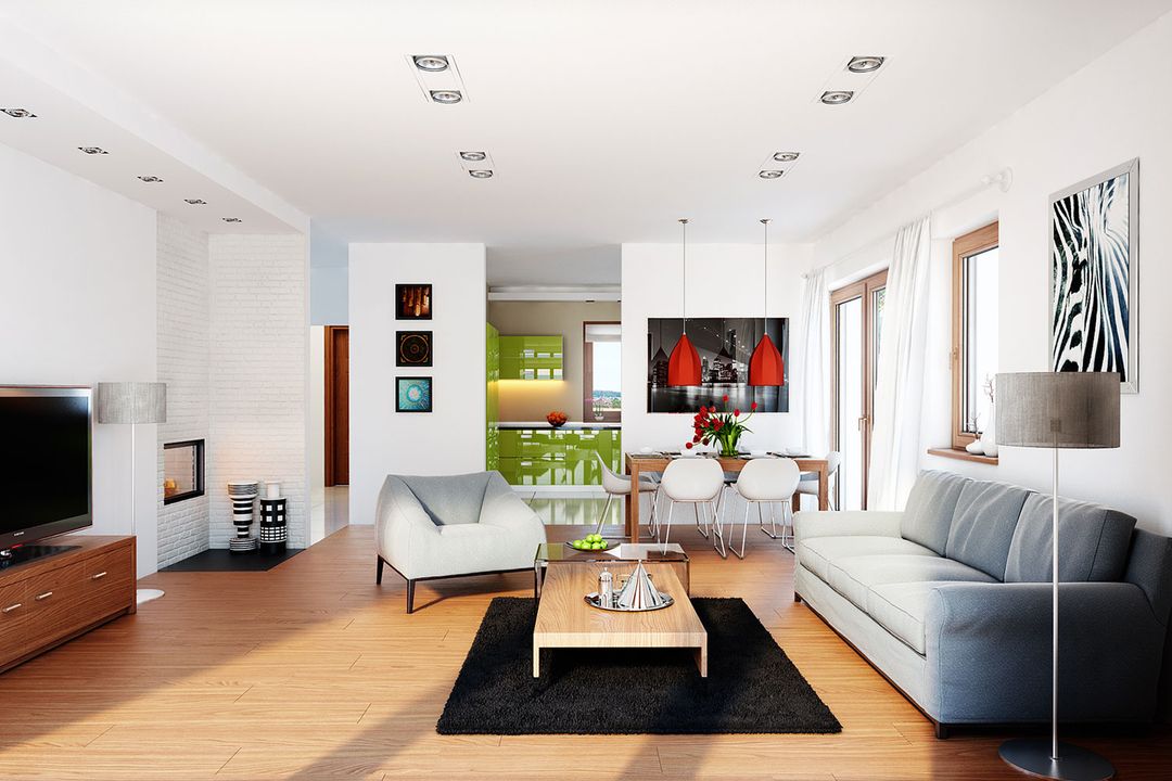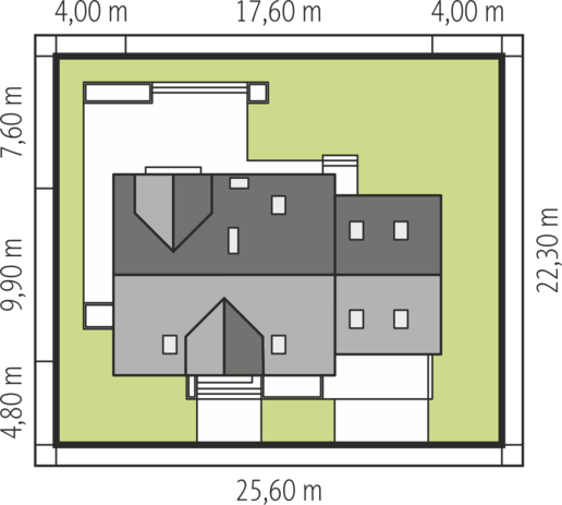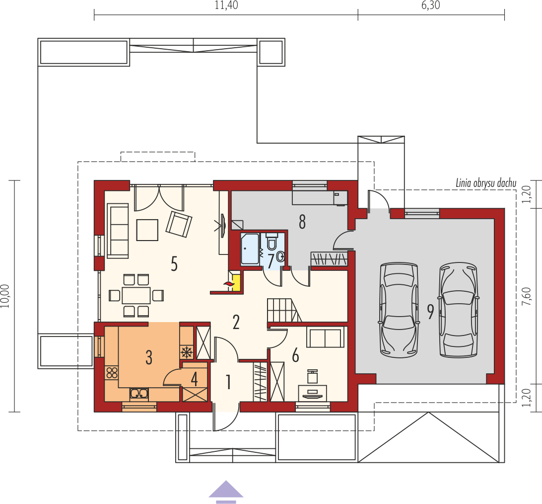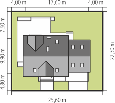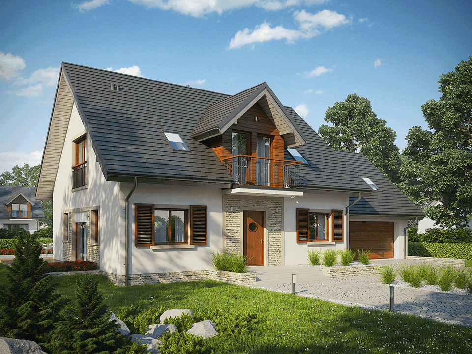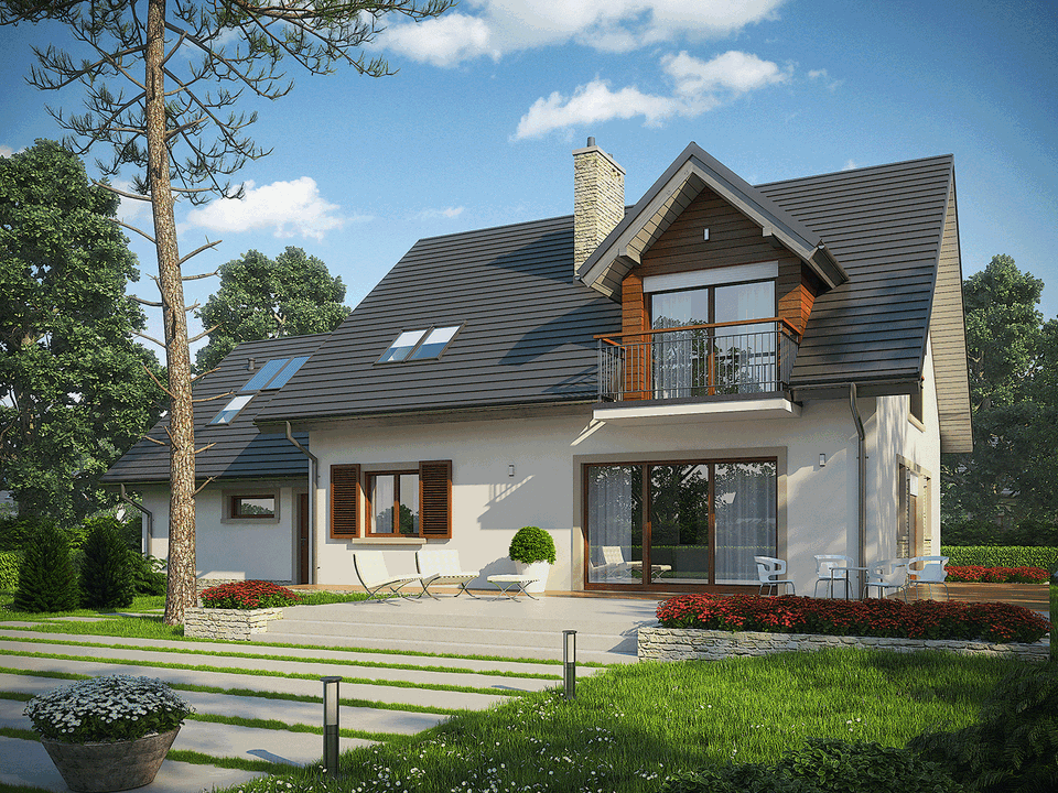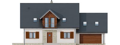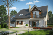 Graficzne opracowanie rzutów poglądowych widocznych na karcie projektu zostało wykonane przez Extradom.pl. Prezentowane przez Extradom.pl wizualizacje wykonane zostały przez autora projektu i należy poczytywać je jedynie za przykład i propozycję wykończenia, wizję architektoniczną autora projektu. Ostateczne wykończenie budynku może nastąpić na wiele sposobów. Szczegółowe rozwiązania zastosowane w oferowanej dokumentacji - w tym również ilość, lokalizacje i wygląd okien, drzwi, kominów - mogą w niewielkim stopniu różnić się od prezentowanej wizualizacji budynku.