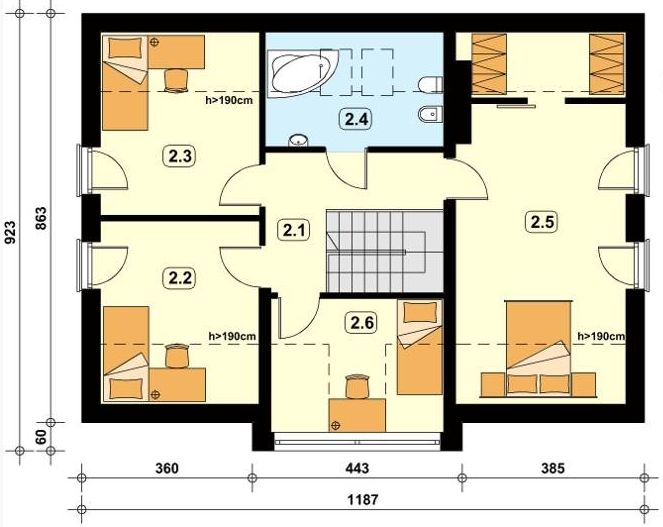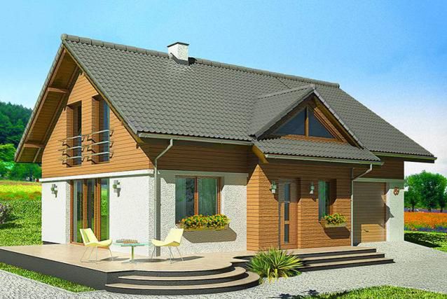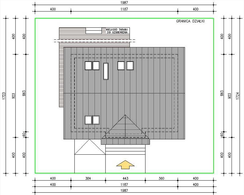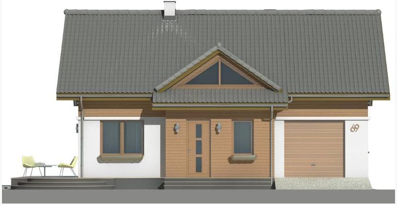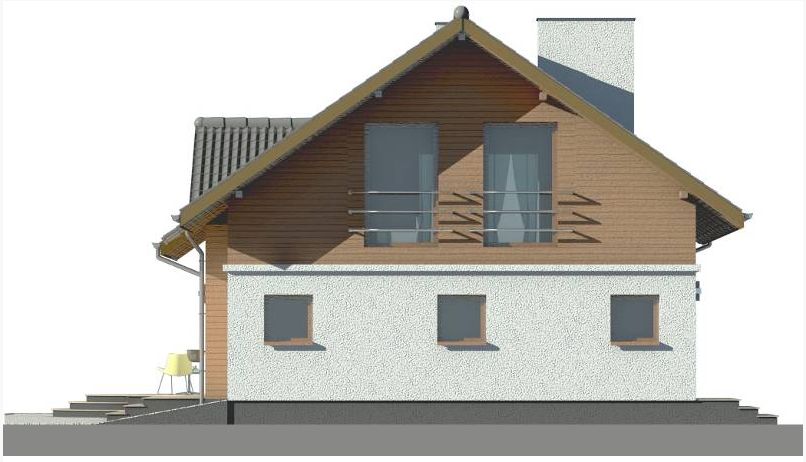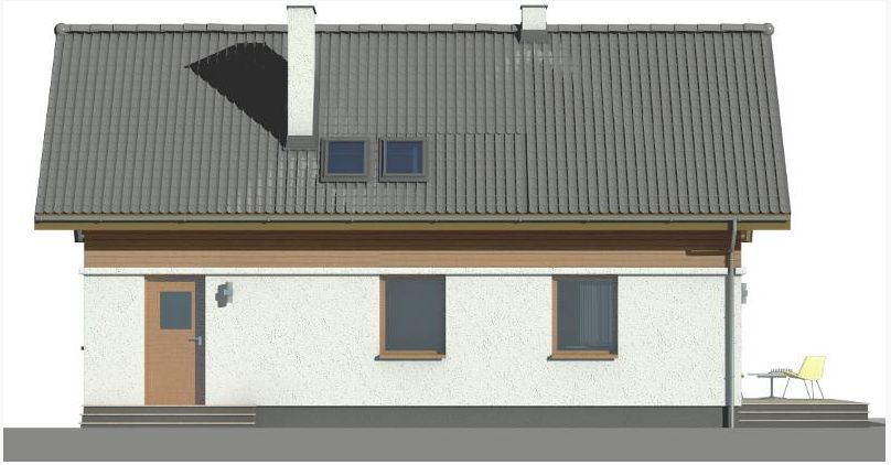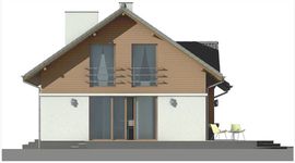 Graficzne opracowanie rzutów poglądowych widocznych na karcie projektu zostało wykonane przez Extradom.pl. Prezentowane przez Extradom.pl wizualizacje wykonane zostały przez autora projektu i należy poczytywać je jedynie za przykład i propozycję wykończenia, wizję architektoniczną autora projektu. Ostateczne wykończenie budynku może nastąpić na wiele sposobów. Szczegółowe rozwiązania zastosowane w oferowanej dokumentacji - w tym również ilość, lokalizacje i wygląd okien, drzwi, kominów - mogą w niewielkim stopniu różnić się od prezentowanej wizualizacji budynku.