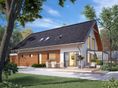 Graficzne opracowanie rzutów poglądowych widocznych na karcie projektu zostało wykonane przez Extradom.pl. Prezentowane przez Extradom.pl wizualizacje wykonane zostały przez autora projektu i należy poczytywać je jedynie za przykład i propozycję wykończenia, wizję architektoniczną autora projektu. Ostateczne wykończenie budynku może nastąpić na wiele sposobów. Szczegółowe rozwiązania zastosowane w oferowanej dokumentacji - w tym również ilość, lokalizacje i wygląd okien, drzwi, kominów - mogą w niewielkim stopniu różnić się od prezentowanej wizualizacji budynku.