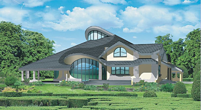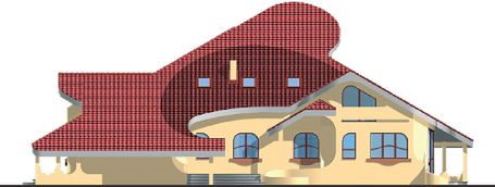 Graficzne opracowanie rzutów poglądowych widocznych na karcie projektu zostało wykonane przez Extradom.pl. Prezentowane przez Extradom.pl wizualizacje wykonane zostały przez autora projektu i należy poczytywać je jedynie za przykład i propozycję wykończenia, wizję architektoniczną autora projektu. Ostateczne wykończenie budynku może nastąpić na wiele sposobów. Szczegółowe rozwiązania zastosowane w oferowanej dokumentacji - w tym również ilość, lokalizacje i wygląd okien, drzwi, kominów - mogą w niewielkim stopniu różnić się od prezentowanej wizualizacji budynku.
