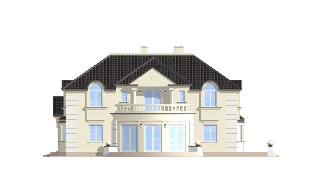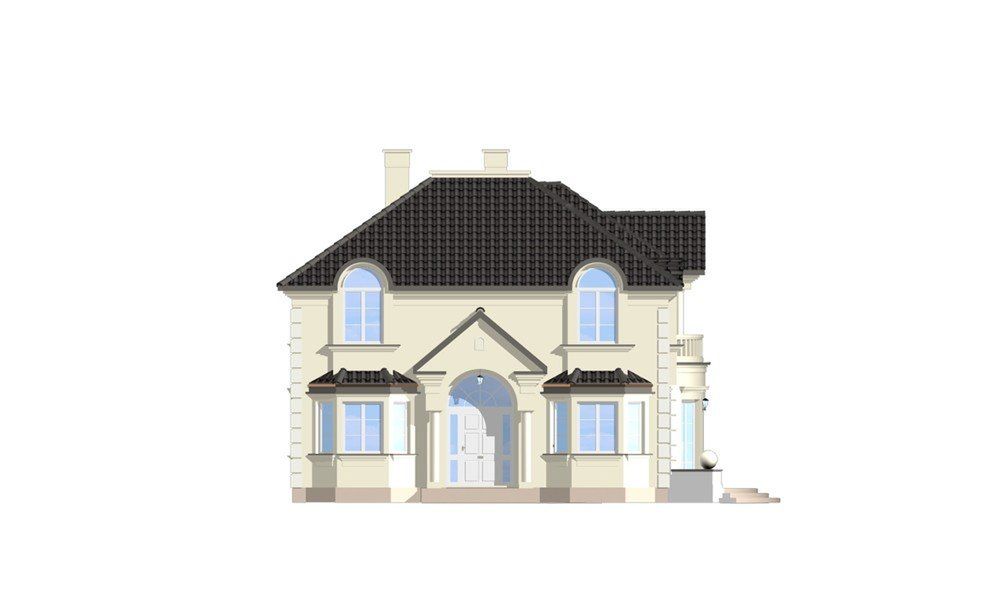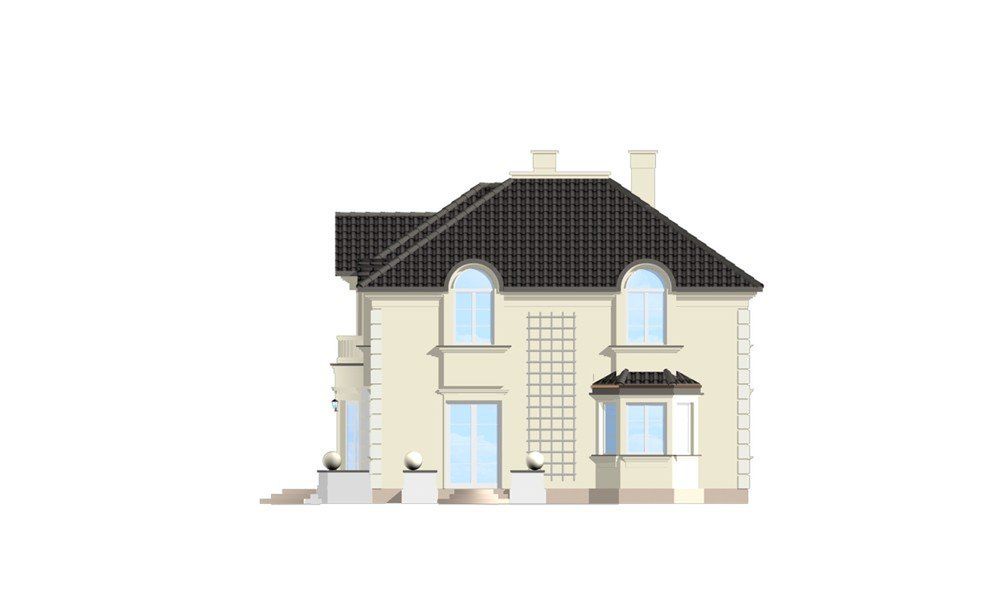 Graficzne opracowanie rzutów poglądowych widocznych na karcie projektu zostało wykonane przez Extradom.pl. Prezentowane przez Extradom.pl wizualizacje wykonane zostały przez autora projektu i należy poczytywać je jedynie za przykład i propozycję wykończenia, wizję architektoniczną autora projektu. Ostateczne wykończenie budynku może nastąpić na wiele sposobów. Szczegółowe rozwiązania zastosowane w oferowanej dokumentacji - w tym również ilość, lokalizacje i wygląd okien, drzwi, kominów - mogą w niewielkim stopniu różnić się od prezentowanej wizualizacji budynku.