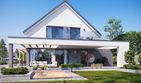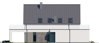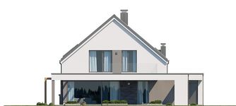 Graficzne opracowanie rzutów poglądowych widocznych na karcie projektu zostało wykonane przez Extradom.pl. Prezentowane przez Extradom.pl wizualizacje wykonane zostały przez autora projektu i należy poczytywać je jedynie za przykład i propozycję wykończenia, wizję architektoniczną autora projektu. Ostateczne wykończenie budynku może nastąpić na wiele sposobów. Szczegółowe rozwiązania zastosowane w oferowanej dokumentacji - w tym również ilość, lokalizacje i wygląd okien, drzwi, kominów - mogą w niewielkim stopniu różnić się od prezentowanej wizualizacji budynku.