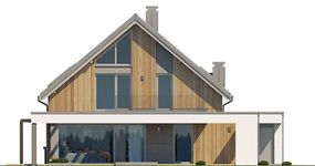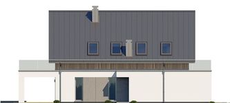 Graficzne opracowanie rzutów poglądowych widocznych na karcie projektu zostało wykonane przez Extradom.pl. Prezentowane przez Extradom.pl wizualizacje wykonane zostały przez autora projektu i należy poczytywać je jedynie za przykład i propozycję wykończenia, wizję architektoniczną autora projektu. Ostateczne wykończenie budynku może nastąpić na wiele sposobów. Szczegółowe rozwiązania zastosowane w oferowanej dokumentacji - w tym również ilość, lokalizacje i wygląd okien, drzwi, kominów - mogą w niewielkim stopniu różnić się od prezentowanej wizualizacji budynku.