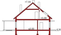 Graficzne opracowanie rzutów poglądowych widocznych na karcie projektu zostało wykonane przez Extradom.pl. Prezentowane przez Extradom.pl wizualizacje wykonane zostały przez autora projektu i należy poczytywać je jedynie za przykład i propozycję wykończenia, wizję architektoniczną autora projektu. Ostateczne wykończenie budynku może nastąpić na wiele sposobów. Szczegółowe rozwiązania zastosowane w oferowanej dokumentacji - w tym również ilość, lokalizacje i wygląd okien, drzwi, kominów - mogą w niewielkim stopniu różnić się od prezentowanej wizualizacji budynku.