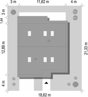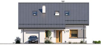 Graficzne opracowanie rzutów poglądowych widocznych na karcie projektu zostało wykonane przez Extradom.pl. Prezentowane przez Extradom.pl wizualizacje wykonane zostały przez autora projektu i należy poczytywać je jedynie za przykład i propozycję wykończenia, wizję architektoniczną autora projektu. Ostateczne wykończenie budynku może nastąpić na wiele sposobów. Szczegółowe rozwiązania zastosowane w oferowanej dokumentacji - w tym również ilość, lokalizacje i wygląd okien, drzwi, kominów - mogą w niewielkim stopniu różnić się od prezentowanej wizualizacji budynku.