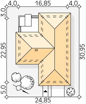 Graficzne opracowanie rzutów poglądowych widocznych na karcie projektu zostało wykonane przez Extradom.pl. Prezentowane przez Extradom.pl wizualizacje wykonane zostały przez autora projektu i należy poczytywać je jedynie za przykład i propozycję wykończenia, wizję architektoniczną autora projektu. Ostateczne wykończenie budynku może nastąpić na wiele sposobów. Szczegółowe rozwiązania zastosowane w oferowanej dokumentacji - w tym również ilość, lokalizacje i wygląd okien, drzwi, kominów - mogą w niewielkim stopniu różnić się od prezentowanej wizualizacji budynku.