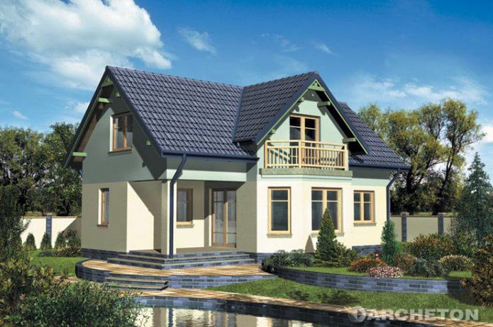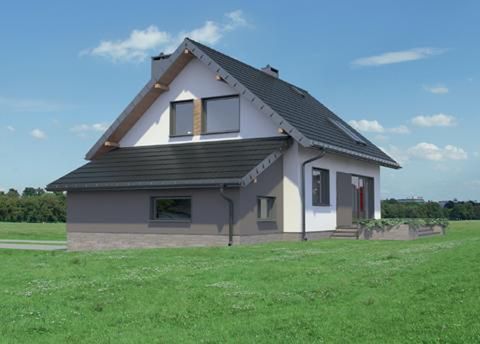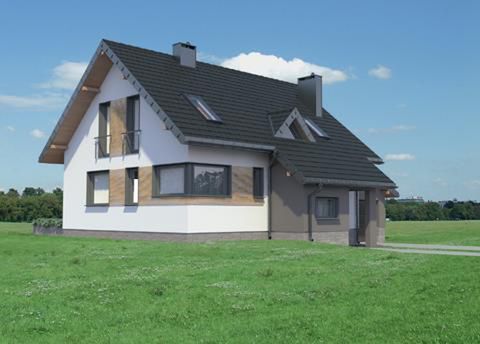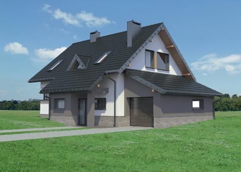 Graficzne opracowanie rzutów poglądowych widocznych na karcie projektu zostało wykonane przez Extradom.pl. Prezentowane przez Extradom.pl wizualizacje wykonane zostały przez autora projektu i należy poczytywać je jedynie za przykład i propozycję wykończenia, wizję architektoniczną autora projektu. Ostateczne wykończenie budynku może nastąpić na wiele sposobów. Szczegółowe rozwiązania zastosowane w oferowanej dokumentacji - w tym również ilość, lokalizacje i wygląd okien, drzwi, kominów - mogą w niewielkim stopniu różnić się od prezentowanej wizualizacji budynku.