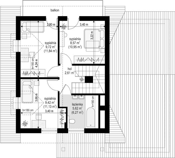 Graficzne opracowanie rzutów poglądowych widocznych na karcie projektu zostało wykonane przez Extradom.pl. Prezentowane przez Extradom.pl wizualizacje wykonane zostały przez autora projektu i należy poczytywać je jedynie za przykład i propozycję wykończenia, wizję architektoniczną autora projektu. Ostateczne wykończenie budynku może nastąpić na wiele sposobów. Szczegółowe rozwiązania zastosowane w oferowanej dokumentacji - w tym również ilość, lokalizacje i wygląd okien, drzwi, kominów - mogą w niewielkim stopniu różnić się od prezentowanej wizualizacji budynku.