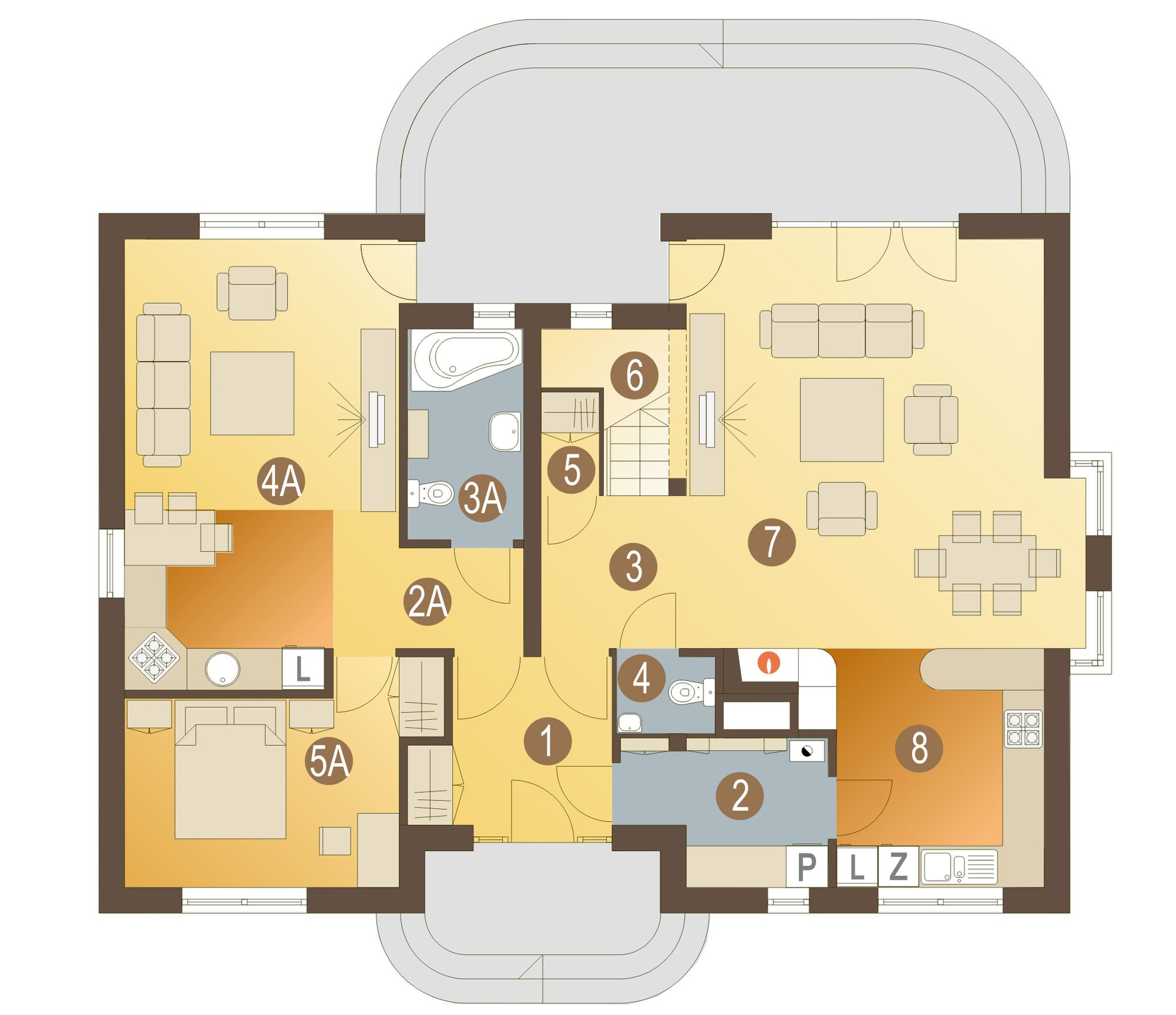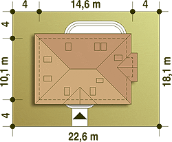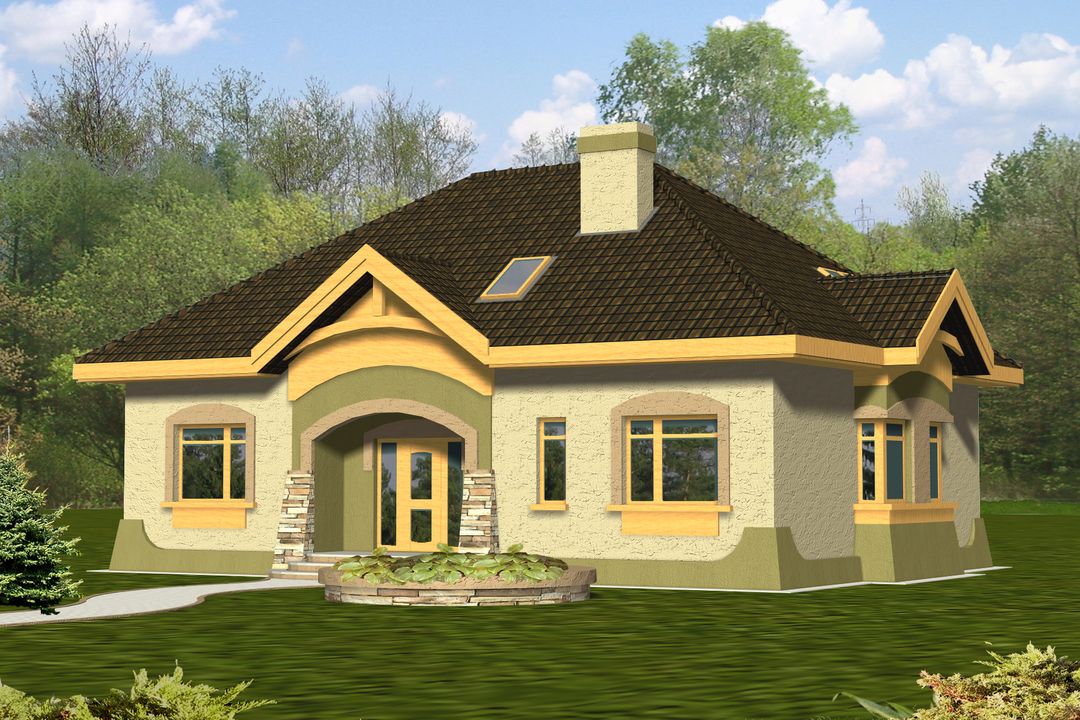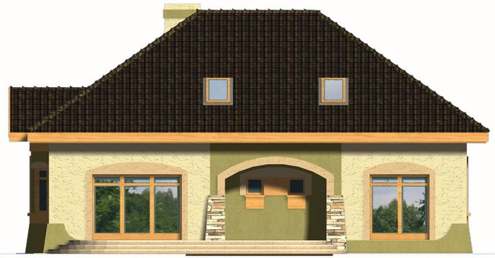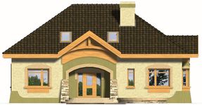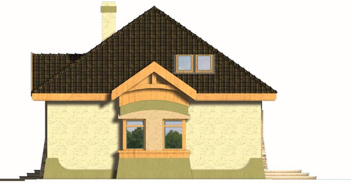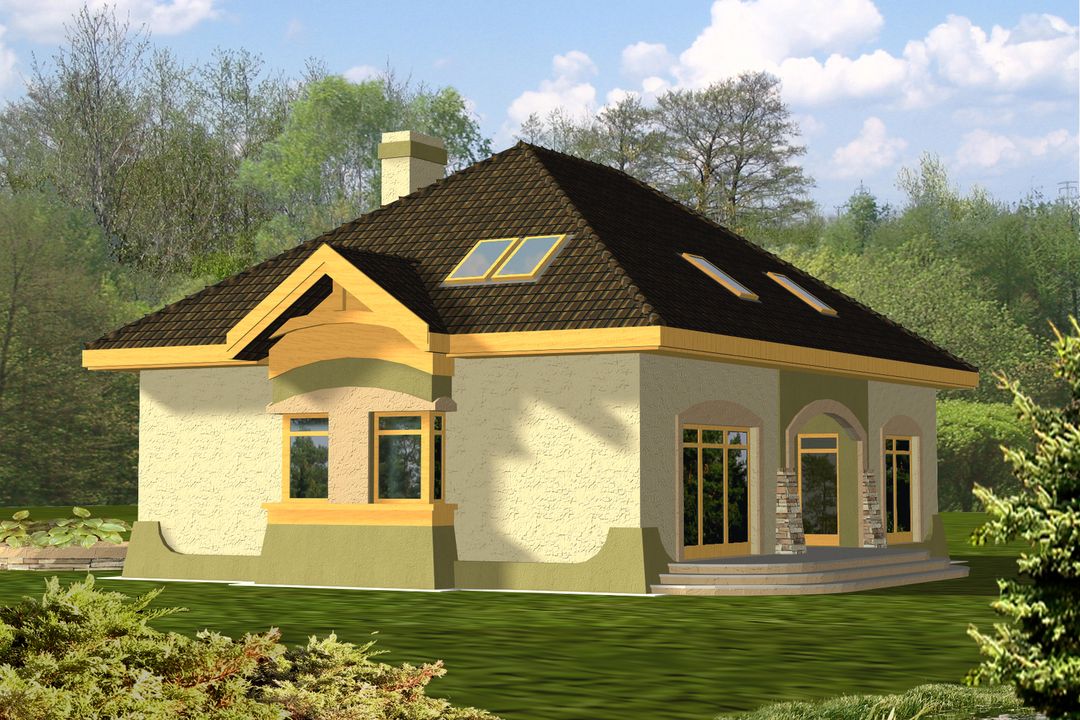 Graficzne opracowanie rzutów poglądowych widocznych na karcie projektu zostało wykonane przez Extradom.pl. Prezentowane przez Extradom.pl wizualizacje wykonane zostały przez autora projektu i należy poczytywać je jedynie za przykład i propozycję wykończenia, wizję architektoniczną autora projektu. Ostateczne wykończenie budynku może nastąpić na wiele sposobów. Szczegółowe rozwiązania zastosowane w oferowanej dokumentacji - w tym również ilość, lokalizacje i wygląd okien, drzwi, kominów - mogą w niewielkim stopniu różnić się od prezentowanej wizualizacji budynku.